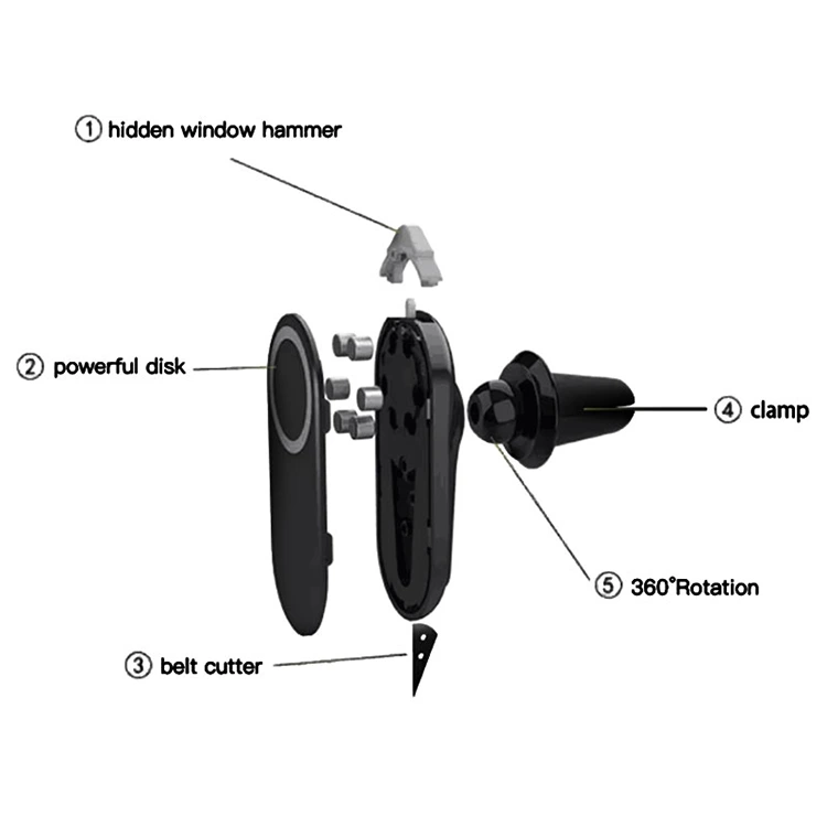 3-i-1-designen forvandler dette tilbehøret fra en enkel holder til et nødverktøy på sekunder. Den skjulte vindushammeren er diskret, men likevel effektiv, og den skarpe, rustfrie beltekutteren bruker en presisjonslegering for å skjære gjennom sikkerhetsbeltene umiddelbart i nødstilfeller.