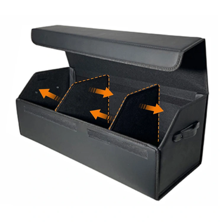 Sammenleggbar: Plassbesparende design kollapser når den ikke er i bruk. Når det ikke er noen gjenstander i esken, eller du må legge store gjenstander i bagasjerommet, kan du brette esken for å spare plass. Tilpassbare interne rom dekker ulike lagringsbehov. Det utstyrte håndtaket gjør den flyttbar, og den kan flytte ting under camping eller shopping.