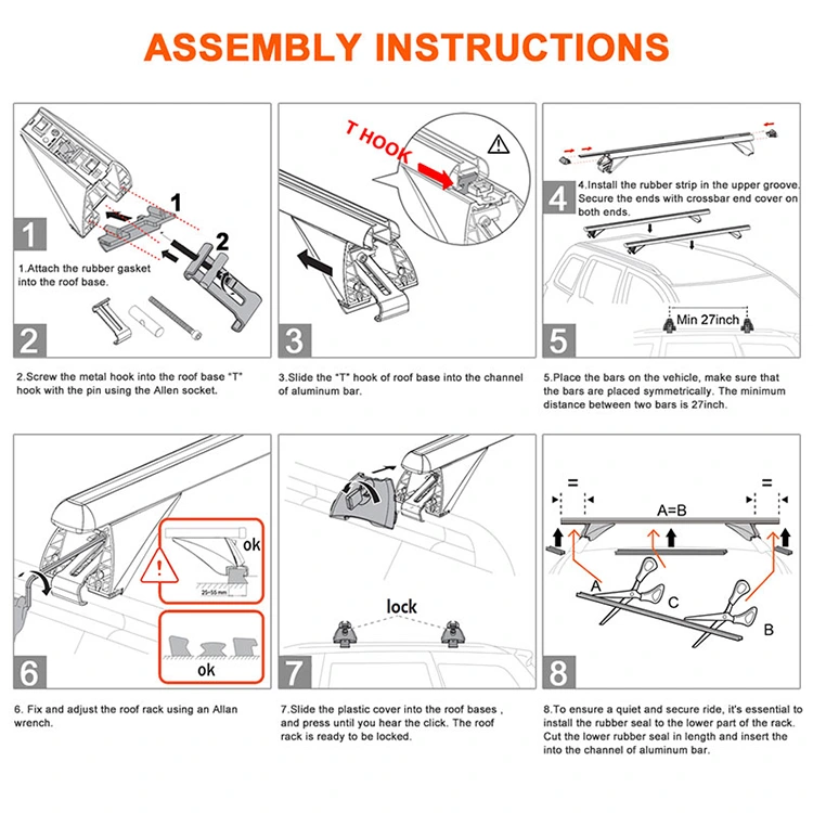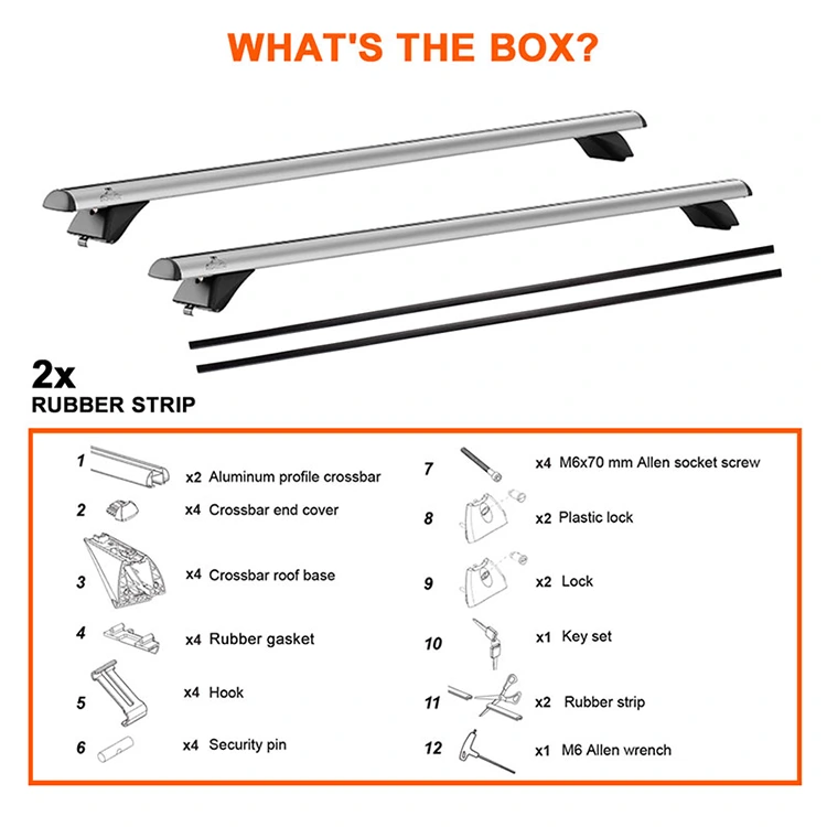 Disse takstativene er konstruert for kjøretøy med flush side rails, og gir en solid plattform for transport av bagasje, sykler eller campingutstyr. Den 14 kg lette konstruksjonen kombinerer korrosjonsbestandig aluminiumslegering og slagfast plast, noe som sikrer holdbarhet. Tilbehør inkluderer 2 nøkler, en sekskantnøkkel, en bruksanvisning og en PVC-list for rask installasjon.