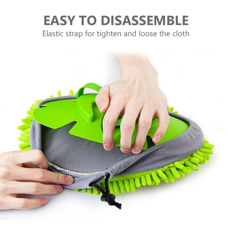 Enkel å demontere og erstatte: Den billige prisen Teleskopisk bilvaskemopp er enkel og langvarig. Den har et avtagbart grønt rengjøringstrekk med grå chenillekant og innebygd snøring. Den elastiske stroppen gjør at den lett kan strammes eller løsnes, noe som gjør den enkel å justere og skifte ut.